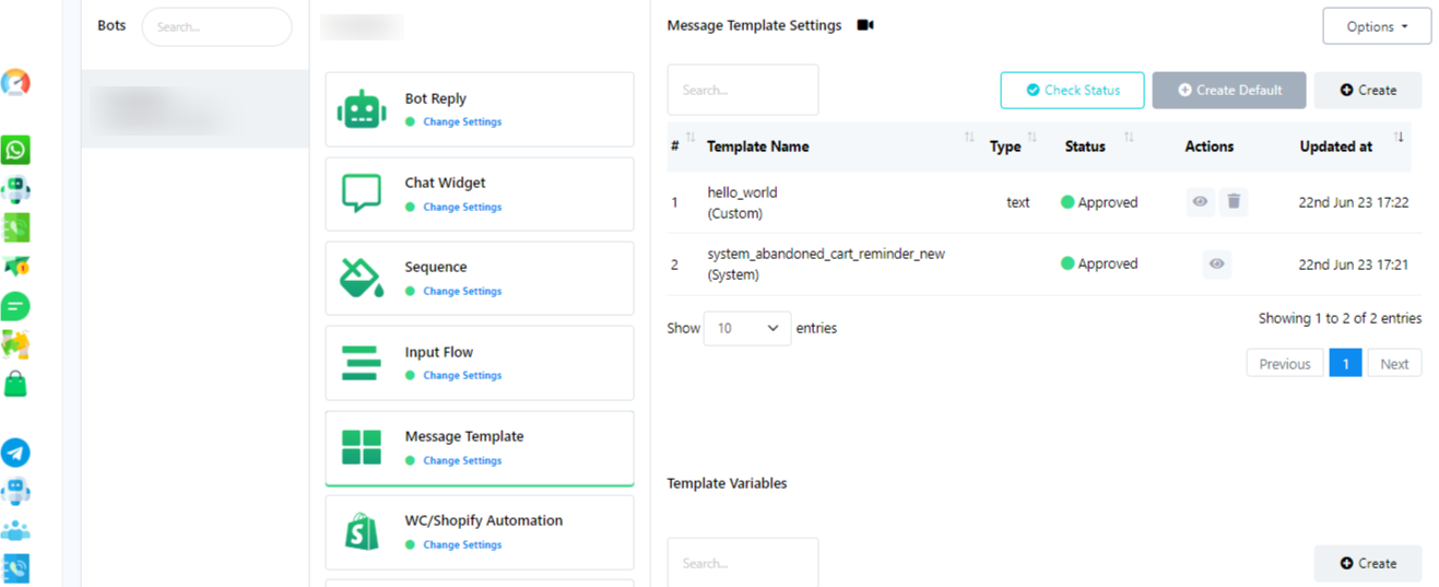 - Go to Wapsflow Dashboard and navigate to the Bot manager section.