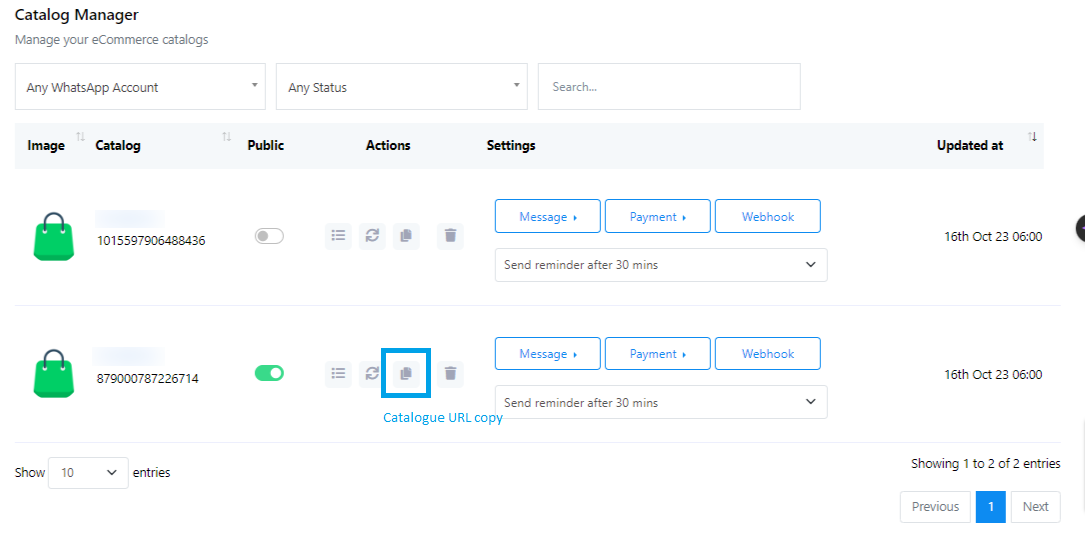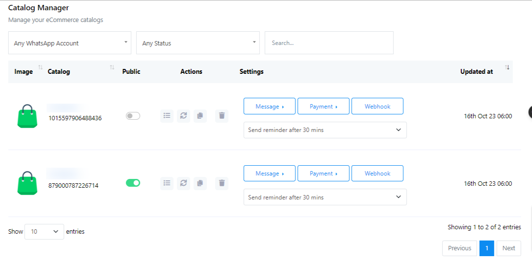 - You`ll find the catalog name and ID. There`s an option to enable or disable the public status.